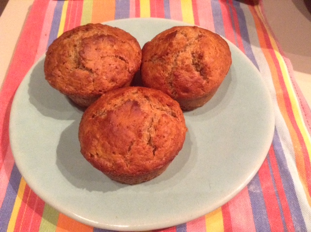 Mix the wet ingredients, then stir in the dry ingredients. Bake at 400 degrees for 15-20 minutes in either papered or greased muffin tins.